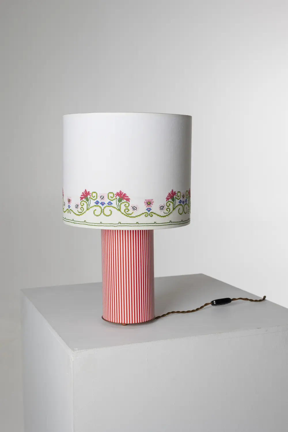 Table Lamp with Handwoven Cotton & Cross-Stitch (1960s)