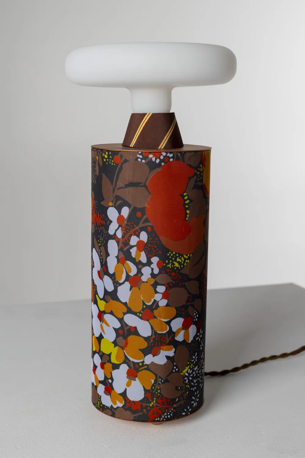 Each lamp is entirely one of a kind. Natural irregularities in the vintage textile are preserved intentionally — signs of its lived history and authenticity.